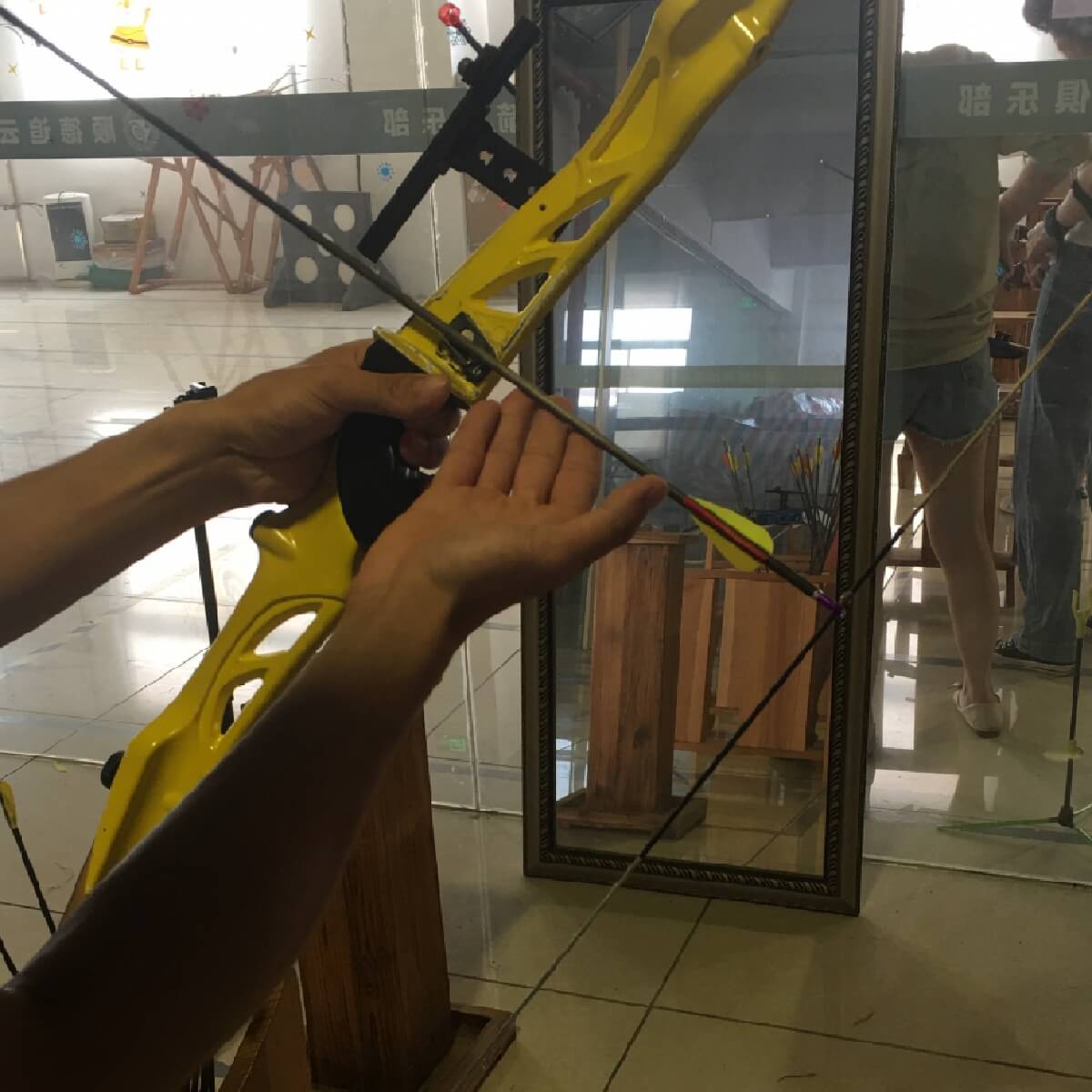 箭已在弦,不得不发,但是出了点小情况……,箭射不出,偏离靶心十万八千里,看来射箭运动远没有想象中那么简单